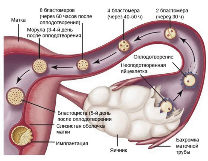 Дробление яйца и продвижение его к матке
